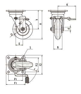 | D | kgf | daN | H | h | B | F1×F2 | P1×P2 | S | E | d | K | r |